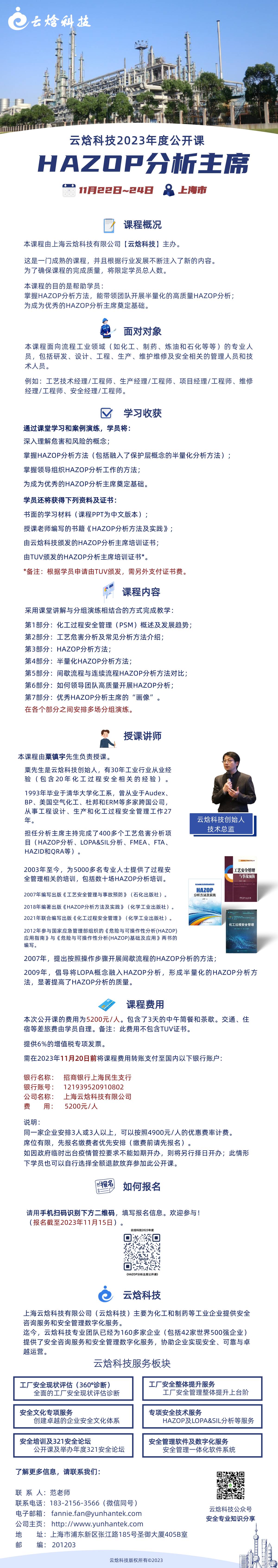 报名已结束:云焓科技2023年度HAZOP分析主席公开课(11月22-24日·上海市)
