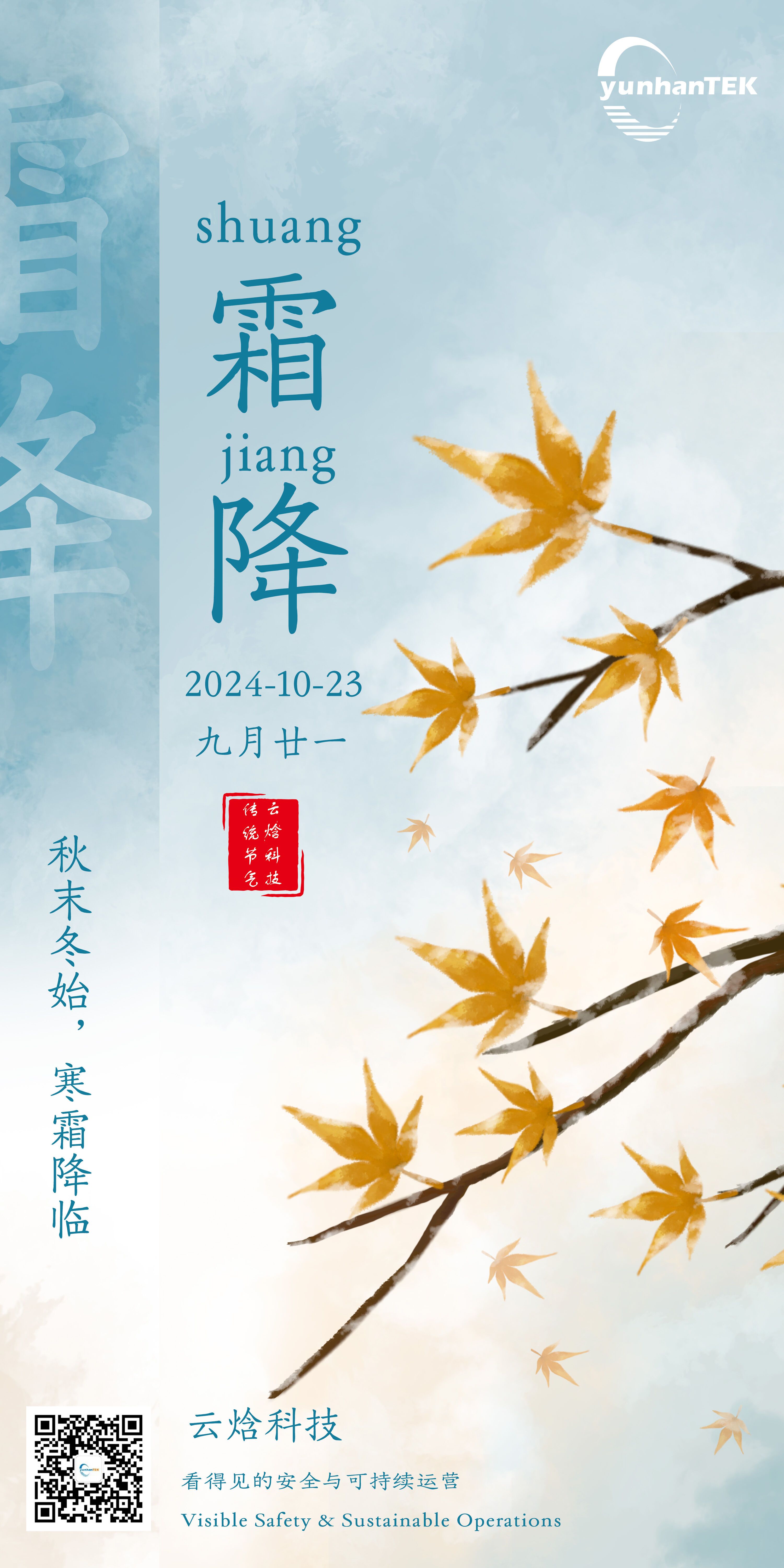 寒露之后,太阳在黄道上再运行15度,到达黄经210度时,即每年的10月23日前后,天气更 冷了,秋天要结束了。这个节气即为“霜降”。 《月令七十二候集解》:“九月中,气肃而凝露 结为霜矣。”《二十四节气解》中说:“气肃而 霜降,阴始凝也。”可见“霜降”表示天气逐渐 变冷,开始降霜。