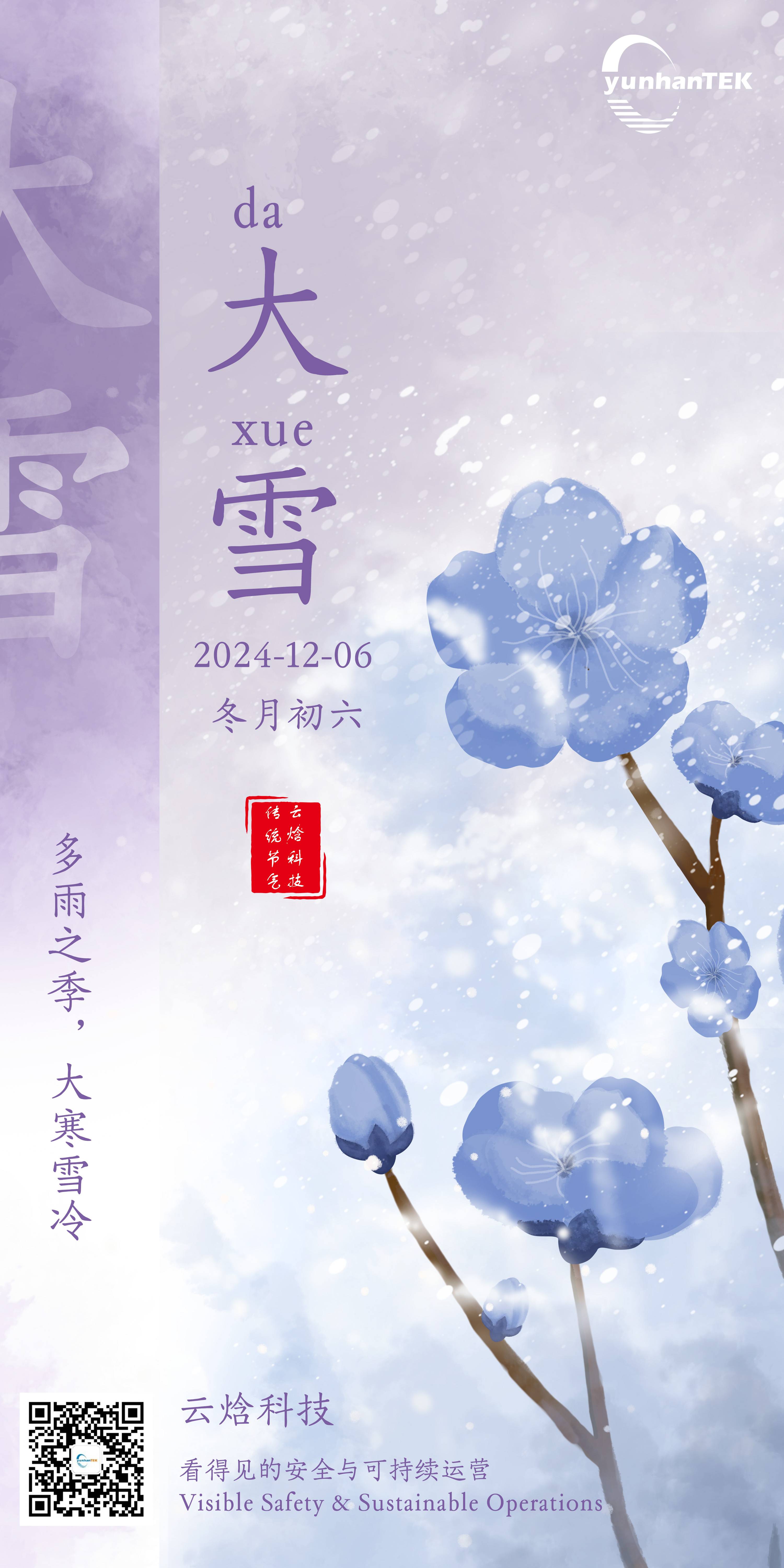 太阳到达黄经255度的时候,即每年的12月7日前后,冬天的第三个节气来临了。《月令七十二候集解》:“大雪,十一月节,至此而雪盛也。”大雪,顾名思义,雪量大,天气更冷了。大雪节气表示降大雪的起始时间和雪量程度,它和小雪、雨水、谷雨等节气一样,都是直接反映降水的节气。