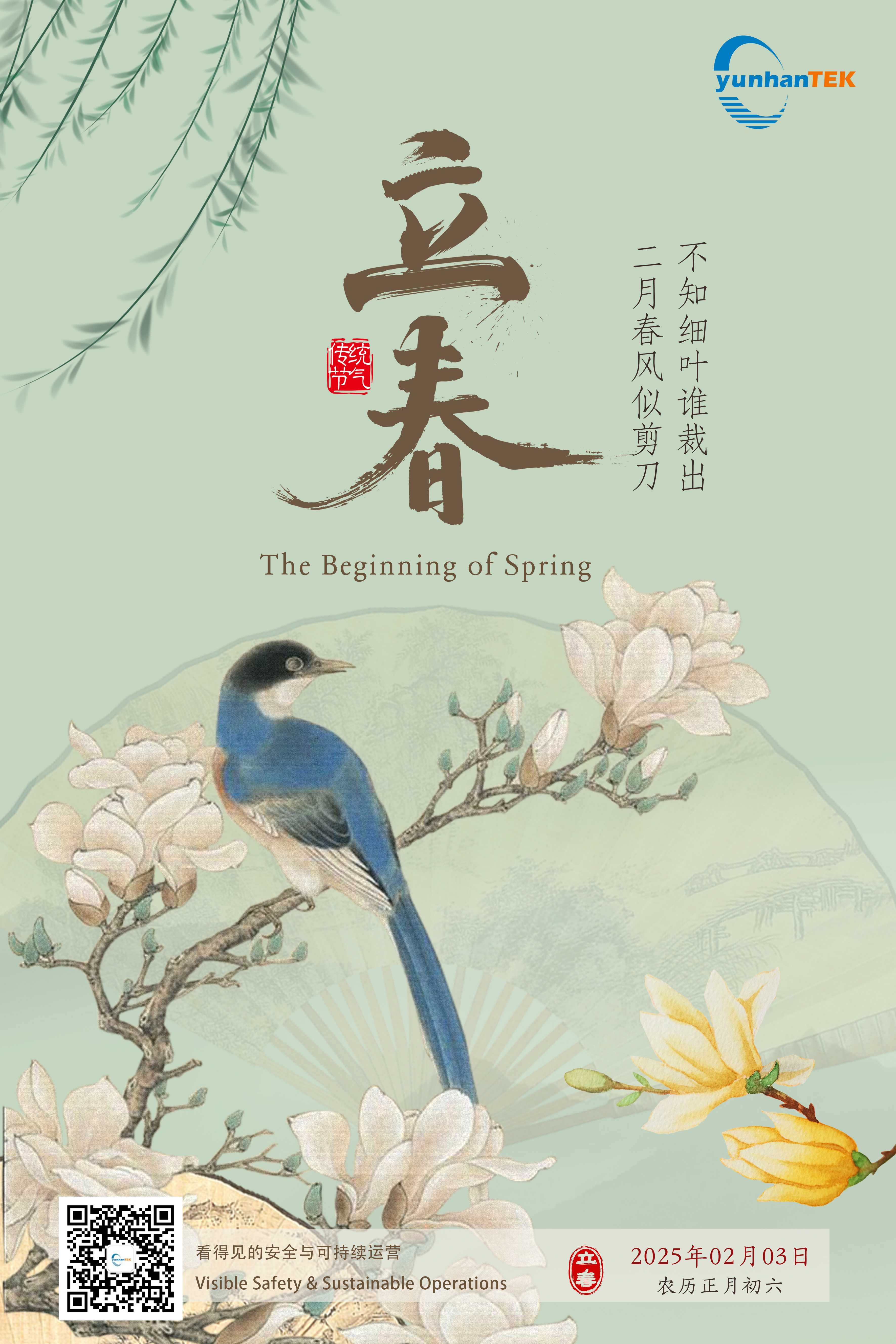 “立春,是二十四节气之首,也是春季的第一个节气。大地回春、万物复苏,二十四节气进入新的轮回。” 在这个充满希望的立春时节,让我们一起迎接新的挑战和机遇。愿我们的客户和合作伙伴在新的一年里,事业蒸蒸日上,安全生产,共创美好未来。