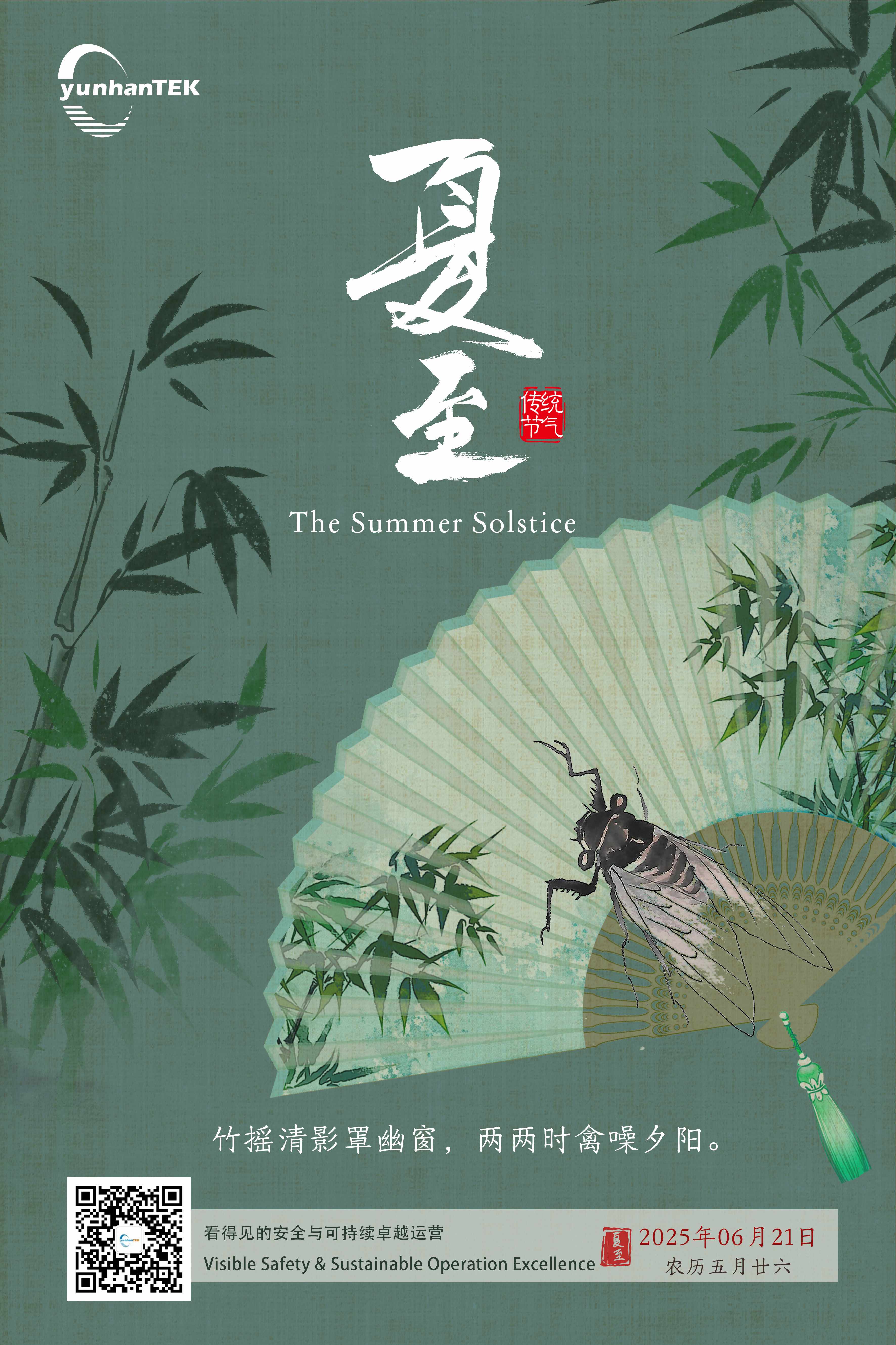 夏至,夜至短,昼至长。竹塘头荷花开,庭院有蝉鸣。扇、布帕携手游,细雨庭院嗅茶香。