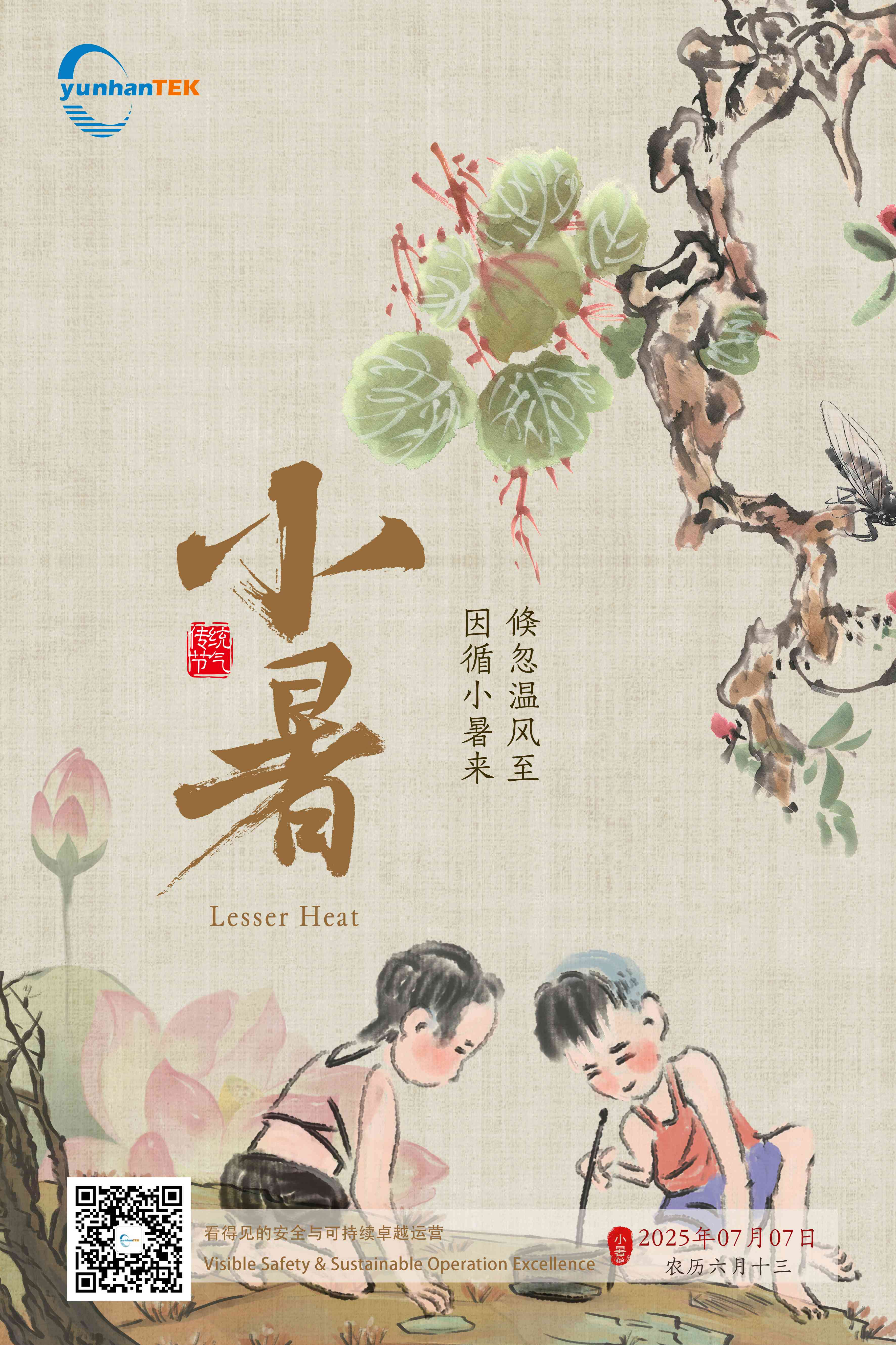 小暑,《月令七十二候集解》:“暑,热也。就热之中,分为大小:月初为小,月中为大。今则热气犹小也。”所以即便此时的暑气已经非常重,也还是可以在前头添一个“小”字,以示酷热程度尚未达到极致。